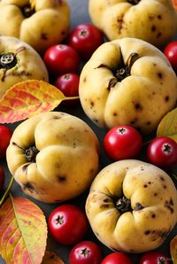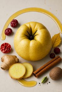 Quince fruit offers numerous health benefits due to its rich nutritional profile. Packed with dietary fiber, it aids digestion, promotes gut health, and helps regulate blood sugar levels. It is also a good source of vitamin C, which boosts the immune system, supports skin health, and acts as an antioxidant to combat free radicals. Additionally, quince contains antioxidants like quercetin and kaempferol, which may reduce inflammation and lower the risk of chronic diseases. Its potassium content supports heart health by maintaining healthy blood pressure, making quince a valuable addition to a balanced diet.